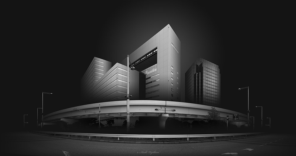 I create this photo with a vision to express the harmony and dynamism of a cityscape. Generally, buildings and railroads are built independently. They are not considered their harmony. But seeing them from a particular viewpoint, railroads and buildings are well-balanced. They are in harmony with each other and they create dynamism in a cityscape. Not only expressing the harmony and dynamism of a cityscape, but I also want to present an importance of seeing a subject from a particular viewpoint. This is the vision and what I want to express in this photo, ● SNS