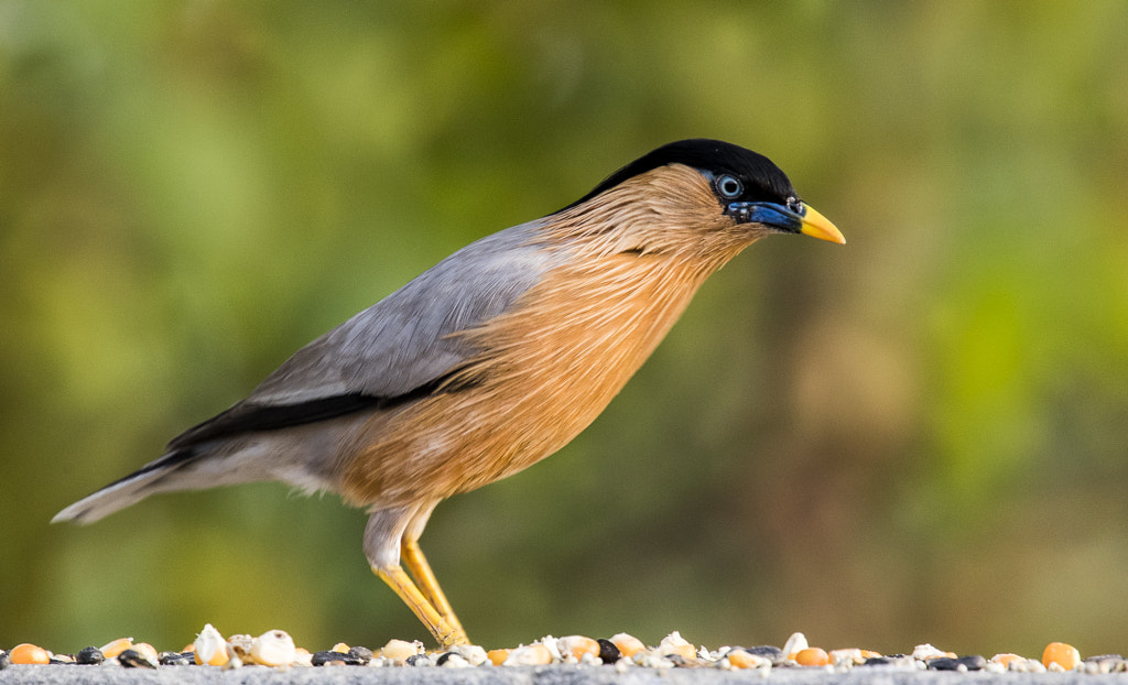 A Brahmani Starling taking breakfast early in the morning.