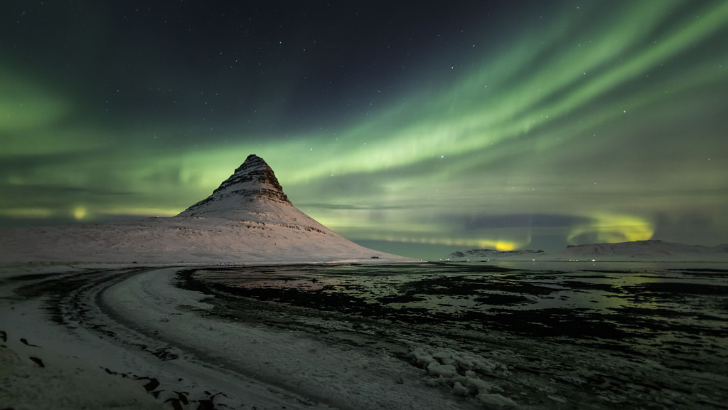 aurora over kirkjufell