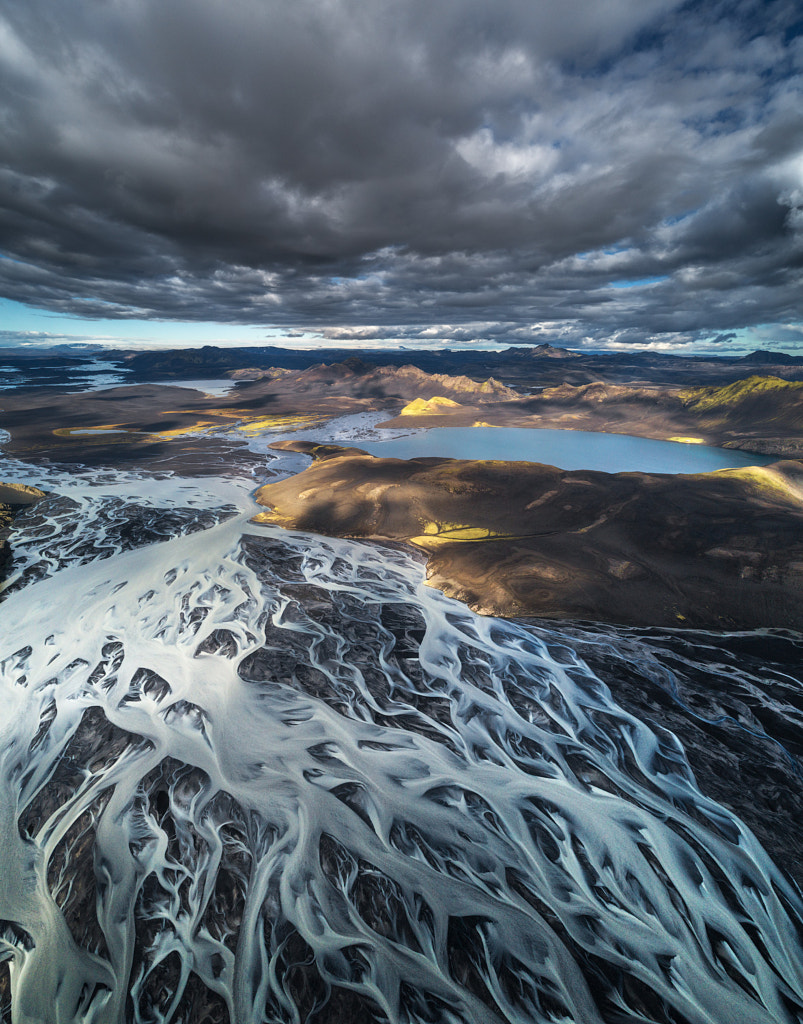 Join Our Photography Workshops in Iceland! An aerial view of the incredible glacial river system in Iceland, which spreads nutrients from the glaciers across the land and into the ocean.