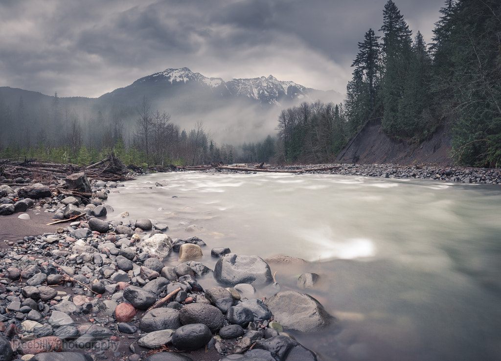 A riverside foggy view at Northern Washington State.