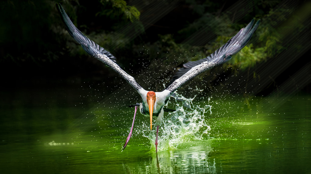 Full Throttle ! by Sunil The aerodynamics of a painted stork getting airborne from water can’t be read in text books. It just got to be seen. Heck of a splash and quite a ripple ! This one goes for the sky with...