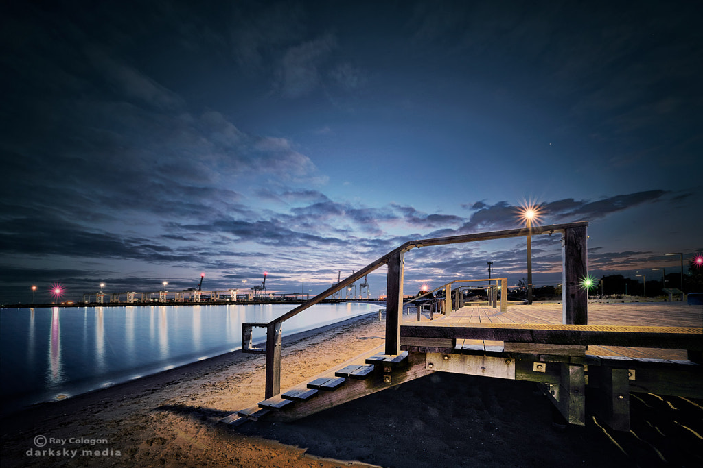 The lonely silence and stillness of spring twilight on Sandridge Beach along the northern shore of Port Phillip Bay in Melbourne.