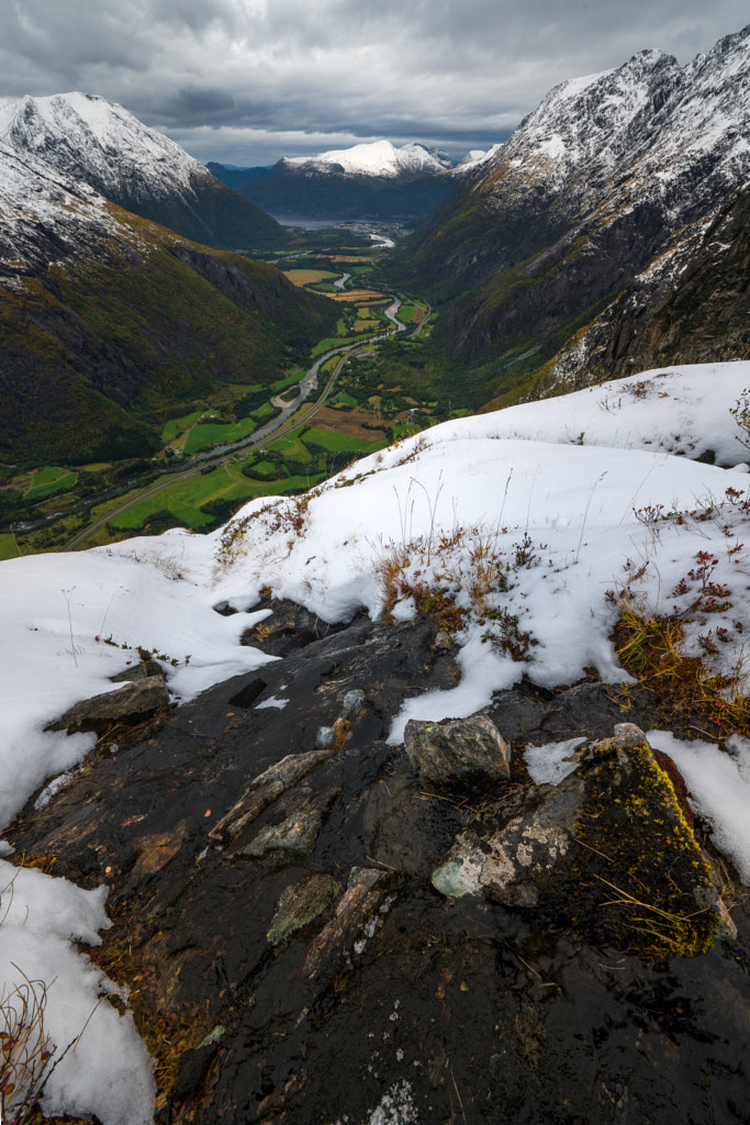 Early snow on Norway mountains combined with still green valleys makes this scene simply unreal.