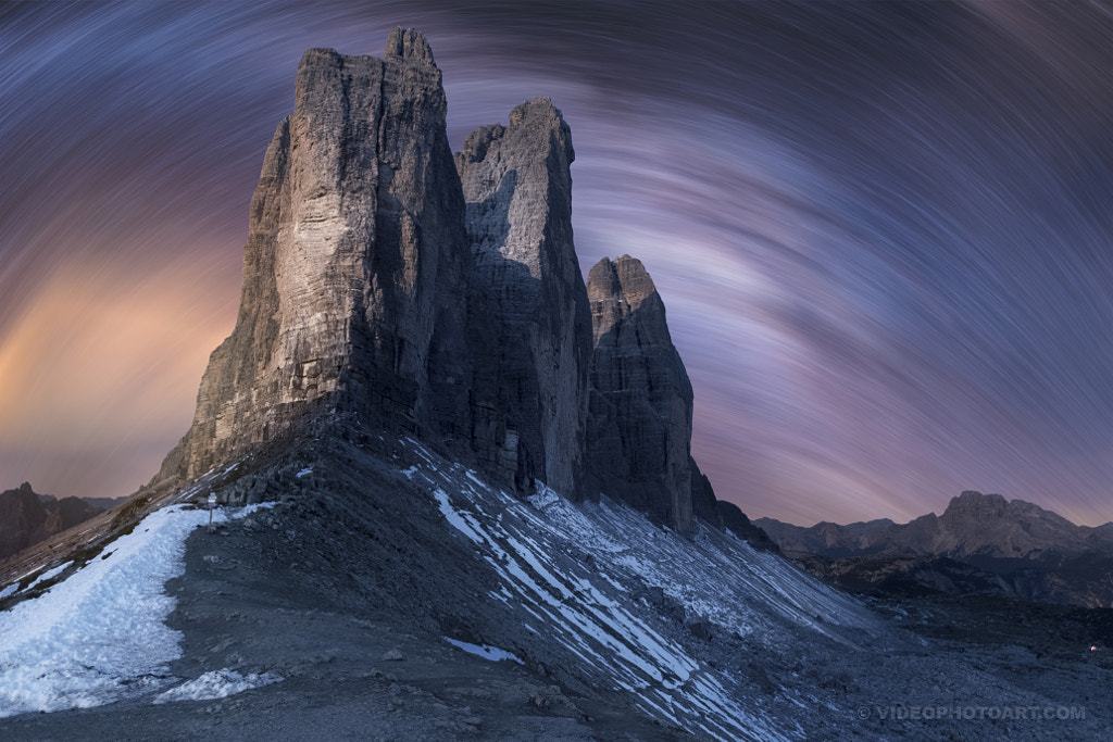 The Tre Cime di Lavaredo (Italian for “three peaks of Lavaredo”, also called the Drei Zinnen (German for “three merlons) are three distinctive battlement-like peaks, in the Sexten Dolomites of northeastern Italy. They are probably one of the best-known mountain groups in the Alps.