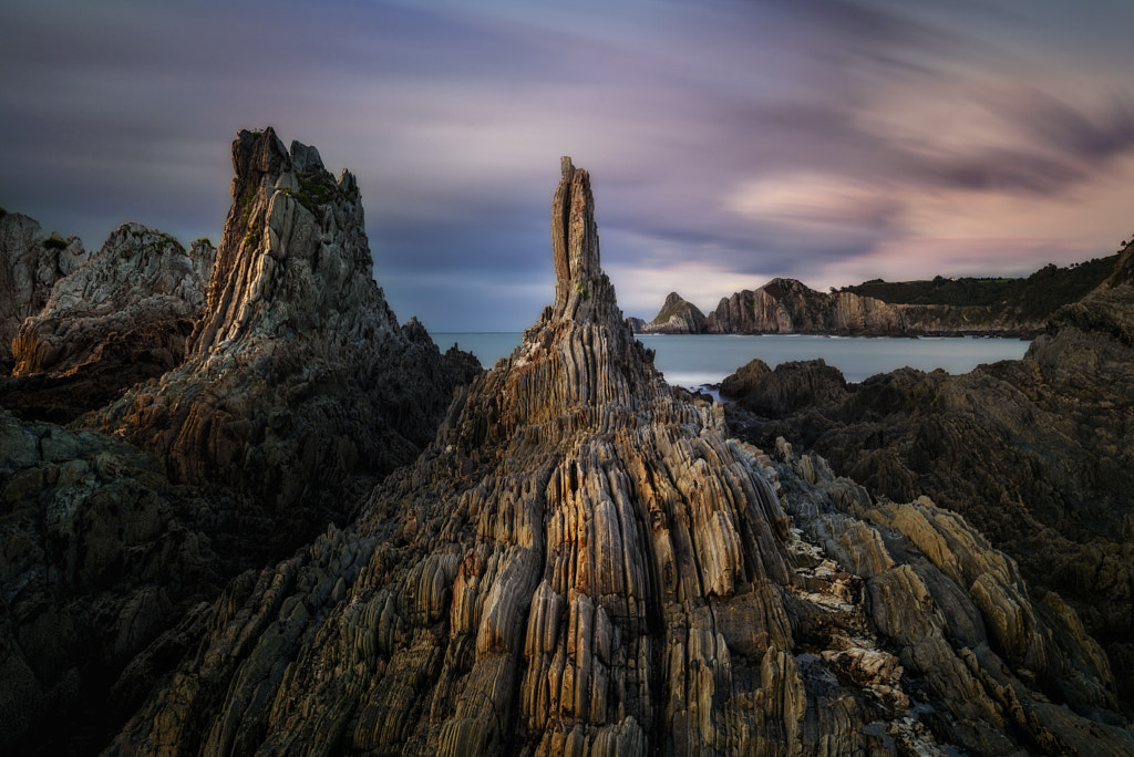 The beach of Gueirua is a photographic paradise and a clear example of the beauty and uniqueness of the Asturian coast (north of Spain). Its most striking aspect are the perfectly aligned needle-shaped rock formations and the equally beautiful Playa del Silencio in the background. At low tide it is possible to reach them to discover surprising framings, although from a position further away they are also beautiful. Shooted with a Nisi 4 stops soft graduated ND filter, a Haida 10 stops ND filter and a LucrOit filterholder. La playa de Gueirua es un paraíso fotográfico y un claro exponente de la belleza y singularidad de la costa Asturiana. Su aspecto más llamativo son las formaciones rocosas en forma de aguja perfectamente alineadas y con la igualmente preciosa Playa del Silencio de fondo. En marea baja es posible llegar hasta ellas para descubrir encuadres sorprendentes, aunque desde una posición un poco más alejada son igualmente hermosas. Toma realizada con un filtro ND Nisi degradado suave de 4 pasos, un filtro ND Haida de 10 pasos y un portafiltros LucrOit.