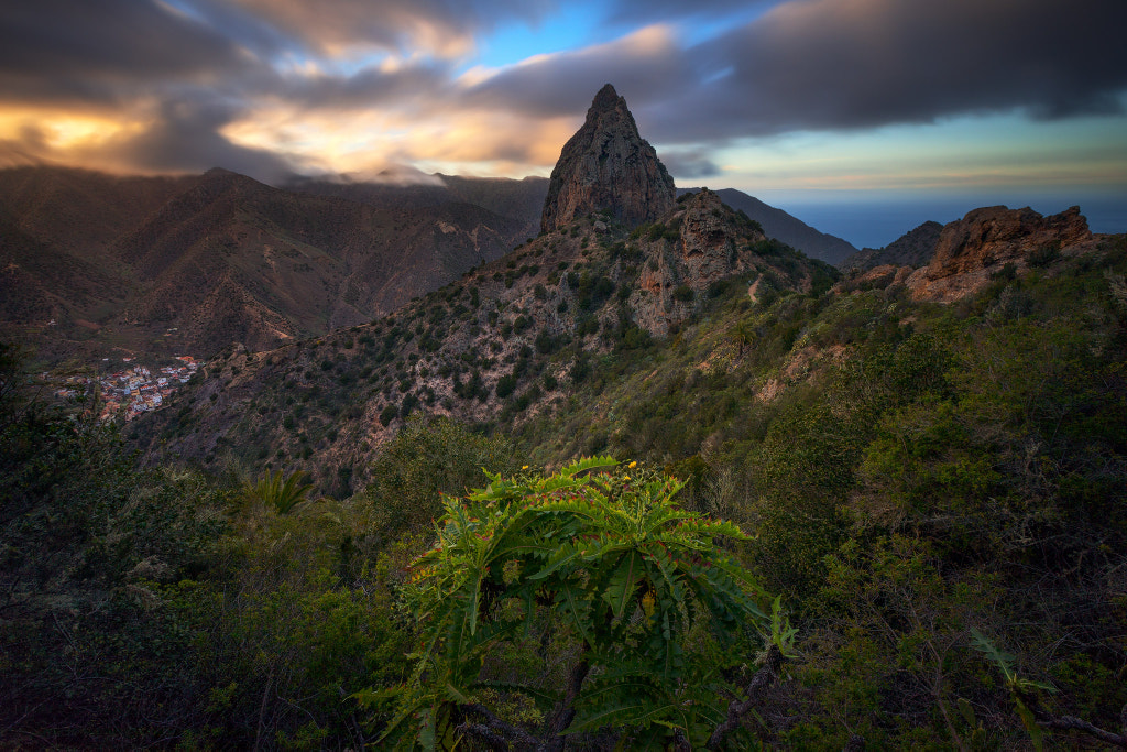 Before and after comparison – with a lot of processing details. Sup amigos! I am finishing my Vallerhermoso series of photos with my favorite from the trip. You see Roque Cano as the highest top here, and Vallerhermoso below to the left. To be honest I was very unsure if I should take this photo at all as I couldn’t fit the foreground plant in the composition and it seemed the surrounding scenery was way too messy. Golden hour and windy clouds convinced me to go for a long exposure, which also added a vignette that removed some of that plant mess in each lower corner. Funny how something I wasn’t sure if I should capture at all turned out to be a personal favorite of a photo for a long time? Composition wise it is a bit challenging due to centered elements, and I tried to crop it, but the crop removed a sense of wide landscape and what was a very open image felt closed in. I therefore chose to leave it that way and I quite like it as it is an unusual composition for me who maybe is a bit too fond of following the rules. As for processing, well – look at the link above. Cheers.