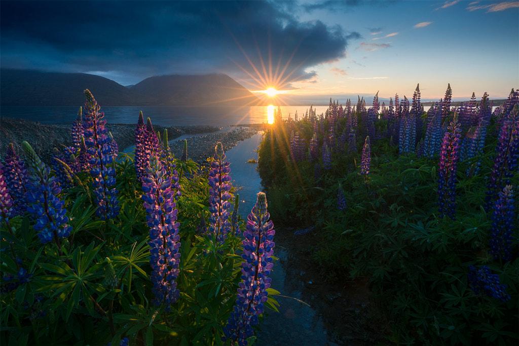 The day prior to this, a fierce storm arrived and obliterated the majority of the lupin scattered around the lakes edge. I went for a walk at dawn and was pleased to find this small patch undisturbed, standing tall as they reached for the light. A special place we visit on my NZ summer tours 馃檪
