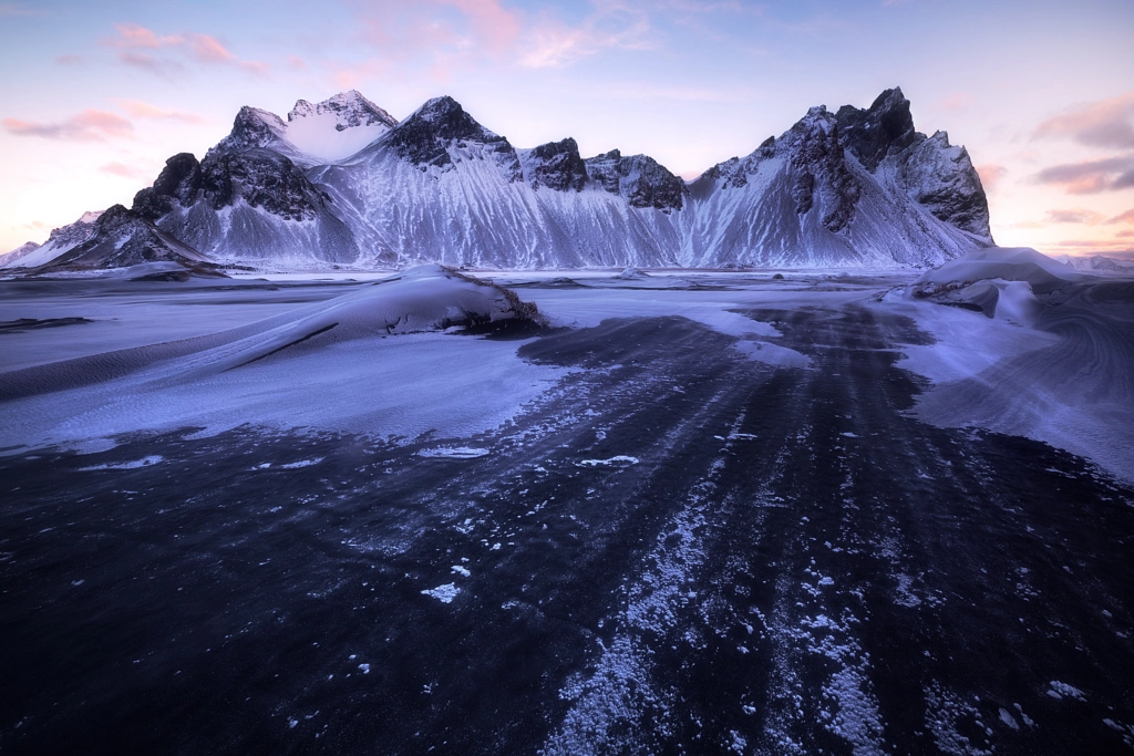 Strong winds were blowing the snow across the black sand at the beautiful coast of Stokksnes. What a wonderful and cold start in the day. Oh and if you want to know how I process my images just check out my website (link down below) for detailed video tutorials. There is an Easter discount so hurry up. 🙂 VIDEO TUTORIALS