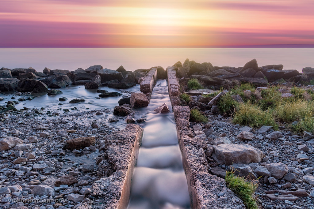 A long exposure of a secluded and unusual beach taken at sunset.