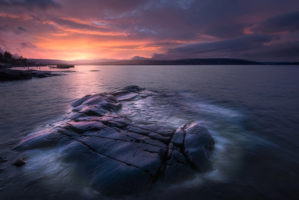 Sunrise Tyrifjorden, Norway. The lake carried very little water last spring something which exposed this underwater reef.
