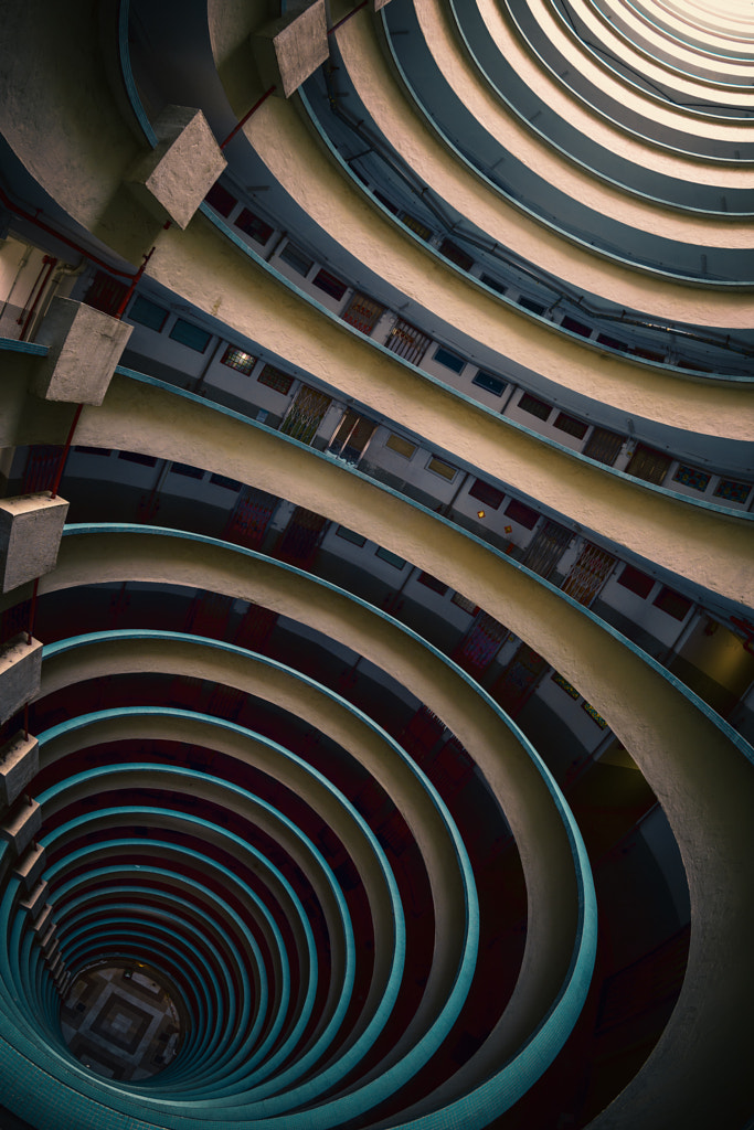 Inside the incense coil, aka Lai Tak Tsuen. A one of a kind public housing estate in Hong Kong. Part of an ongoing series Stacked – Urban Architecture of Hong Kong Stay up-to date by following me on: