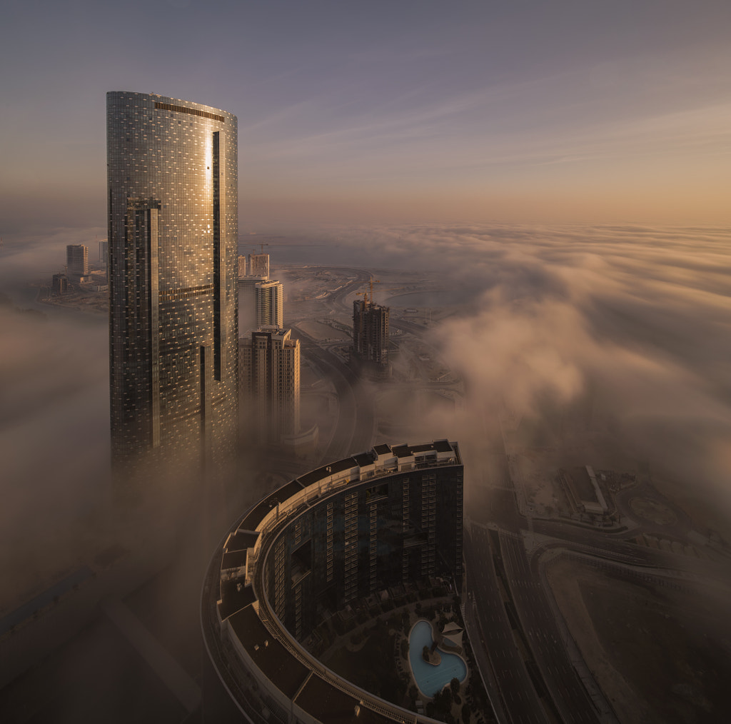 I spent the last 2 weeks in Abu Dhabi & i was lucky to have 3 days of fog. I shot this from the 63floor of the Gate towers at Al Reem Island. This view would not have been possible without using Nikon 19mm Tilt Shift because i was so close to the Arc. I did three shots in landscape mode, shifting up and down, and combines them using the vertorama technique & i added NiSi Filters 10 stop for the long exposure effect. You can follow me on Facebook | Instagram