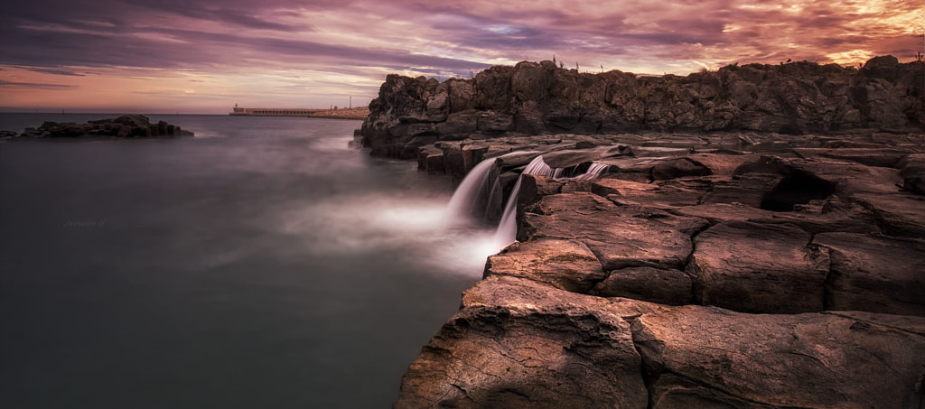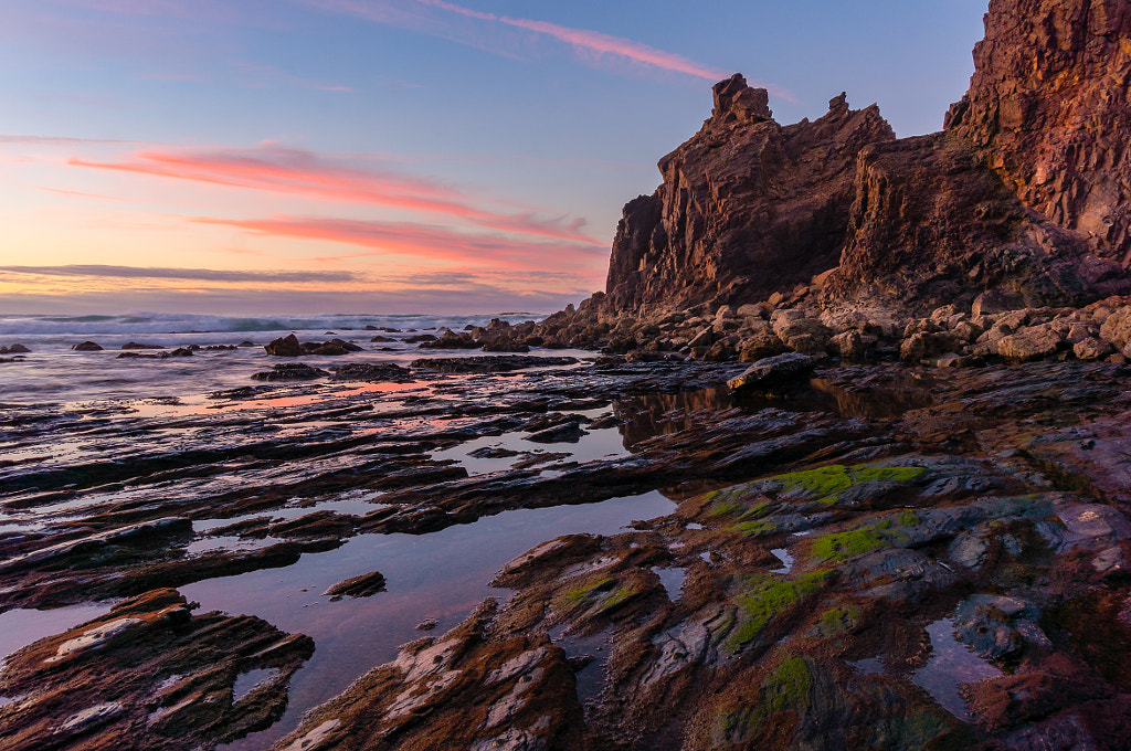 Beach life is not for me. While my family was chilling on Praia do Amado in Algarvel, I made some scouting around and found a stony beach with the lovely pebbles hidden in the rocks. It looked promising, so I checked the sun position in Sun Surveyor and tide schedule in Tides Charts Near Me and realized there could be a possibility for a sunset photo. When I back there in the evening I wasn’t disappointed. Low tide exposed the stone seabed with numerous pools. The soft clouds worked just amazing with the sharp texture of the stones creating together the strong leading lines to the rock. To leave the beach I had to make a little bit of climbing. Thanks to some kind people, there was a rope. It made my night climbing way easier!