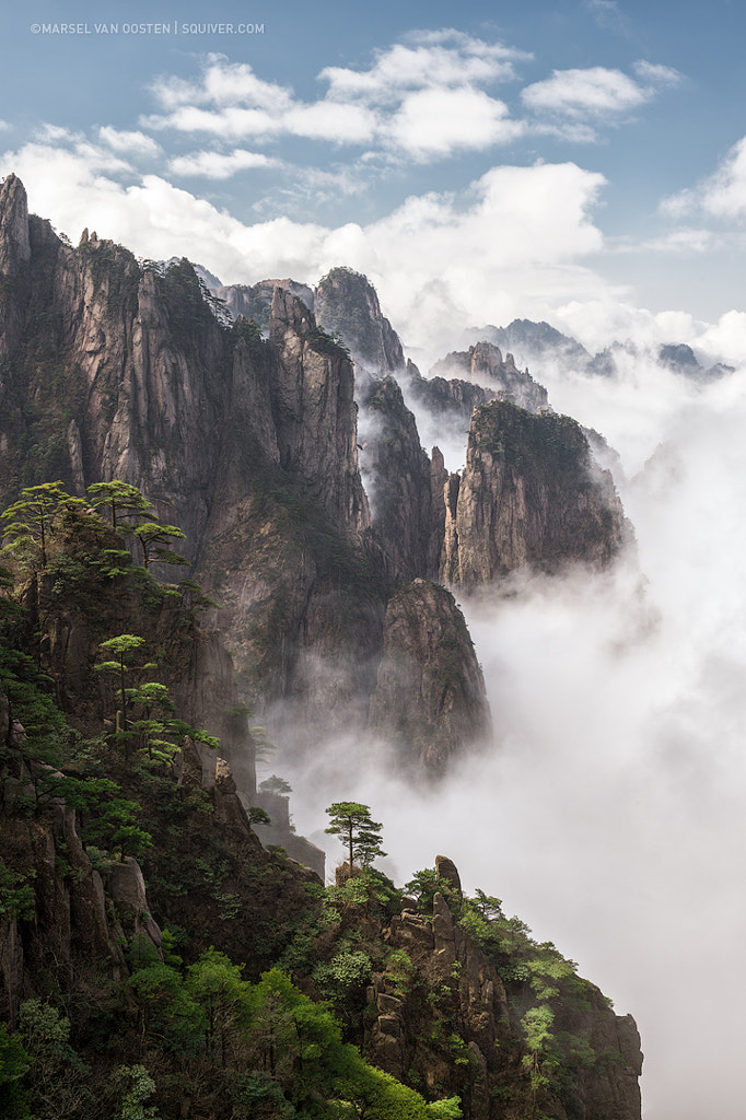 Reservations: www.squiver.com/booking.html This image was shot from the top of the Yellow Mountain in southern Anhui province in eastern China. The landscape here is totally unique and at times mesmerizing. Most mountain landscapes are very similar in shape, but this place is in a league of its own. The combination of the countless granite peaks and the pine trees becomes truly magical when the famous Sea of Clouds appears. When it does, it’s hard to predict what’s going to happen. Sometimes the clouds are relatively stationary and the views barely change, but most often the clouds are like a living organism – moving, growing, and then disappearing again. Obviously, these are the conditions we photographers love and as the clouds move, the views and the light changes completely and you can basically keep shooting as every frame will be different. What I like most about those creeping clouds, is that they tend to crawl into every valley and thereby creating separation between the different peaks. We’re running two landscape tours this year to this amazing place and two other spectacular locations. The first tour is fully booked, but we have a few openings on the second tour from 7-22 April 2018. If you’re interested, we can now offer you a whopping $1,000 LAST MINUTE DISCOUNT! For more information on the itinerary and pricing, check out the Where Dragons Roam tour page on our website: ow.ly/X4b7100PSrQ Hope to see you there! Marsel | squiver.com WEBSITE | FACEBOOK | INSTAGRAM