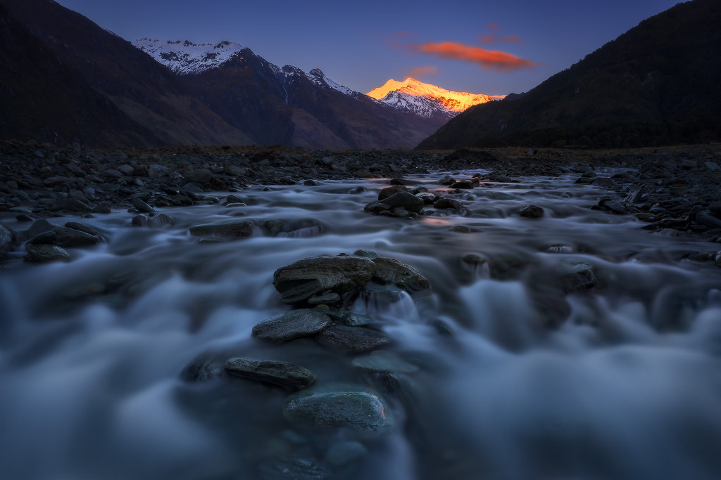 Early morning in the magical west matukiki valley just outside of Wanaka. Waterfalls, mountains, streams, glaciers – pretty much has it all. Oh and plenty of sheep too!