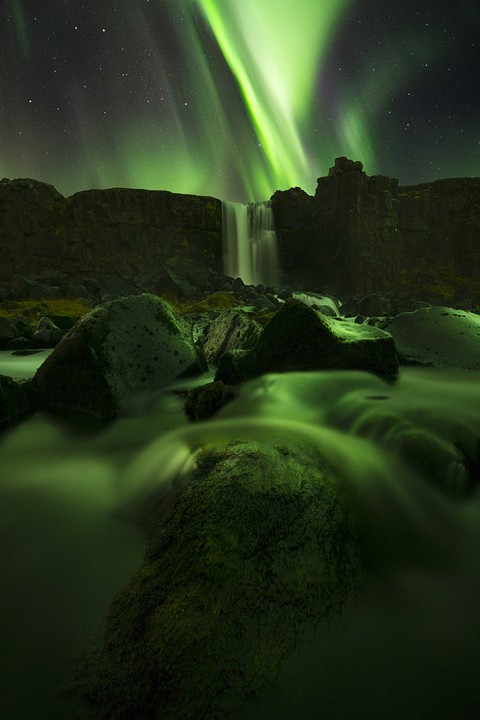 Illustrious, mesmerising, heavenly – there is no shortage of words used to describe what it’s like to stand beneath the Northern Lights during a vibrant display across the nigh sky. The beauty of such phenomena can be very short lived however, and on this particular night, the lights were suddenly dimmed upon arriving at this location. After close to three hours of waiting and just about ready to leave, the glory was revealed once more as the green glow illuminated the earth and dance across the sky for a mere minute or two.