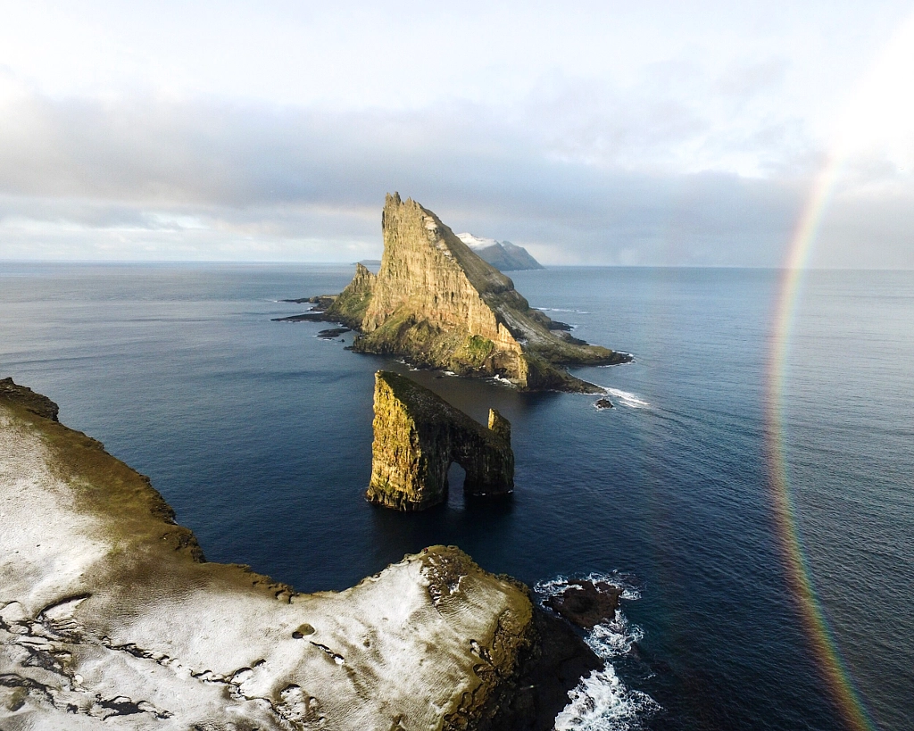 After really bad weather for 10 days I was finally able to fly the drone in the Faroes. I carried the drone on the long hike with hope the wind would let up. After a morning storm passed, the wind finally gave me a chance to fly… I was even able to capture a double rainbow! I was so nervous to fly since my friend @gdmphoto let me borrow his drone after I crashed mine the day before we left on the trip. All the extra effort to get the drone was worth it! @visitfaroeislands #faroeislands