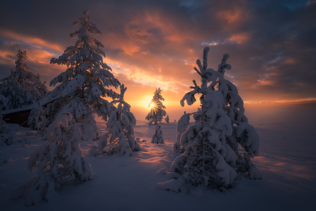 Winter is the time when nature really likes to show off its painting skills. When everything is white and on the rather monotonic side, nature likes to use these white sheets to draw patterns, curves and strange shapes. Nature does often forget that the sky is still colorful and sometimes it too shows strange patterns and formations. I noticed these patterns when skiing earlier in December. The current conditions almost always give a golden hour and I wanted to give a sense of atmosphere with a long exposure which I think accompanies the snowy formations well. Additionally the colors that show up during winter time are always really vibrant, but not too vivid, giving off this twilight feel I like so much. In processing I did a bit of cropping to give the tree a bigger role. I did a mix of warm and cold colors both in white balance in RAW and later in Photoshop, and did a bunch of darkening to give a stronger sense of mood. I wanted to convey a lonely and desolate atmosphere. What do you think?