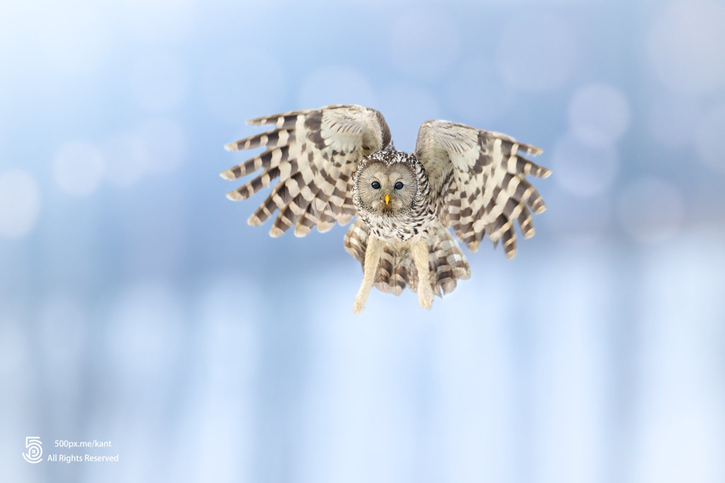冬日童话II by Kant 长尾林鸮(Ural Owl),猫头鹰的一种。美目盼兮,巧笑倩兮,此刻,长尾林鸮妹妹正迎面飞来。 Kant: Photos