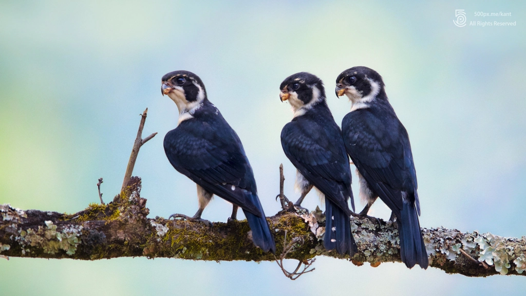 白腿小隼(Pied Falconet),是一种很有喜感的鸟类,他们在清晨较为凉爽时呈现出一副矮矮胖胖的蠢萌模样(具体请见之前的照片《拥簇一团》),然而,随着气温升高,他们居然拿起范来,一个个挺胸收腹的,精神得简直堪比穿着西服的男模,恐怕连他妈都认不出来了 :)