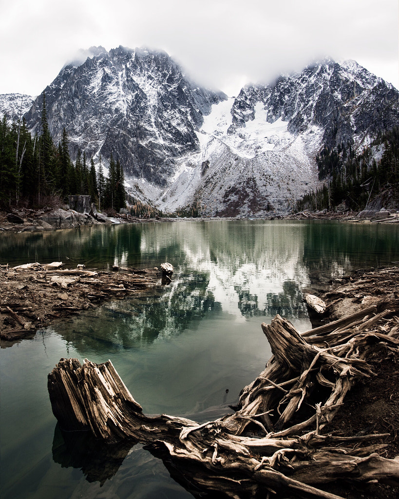 foggy colchuck lake. dragontail peak. enchantments. washington. by Tanner Wendell Stewart