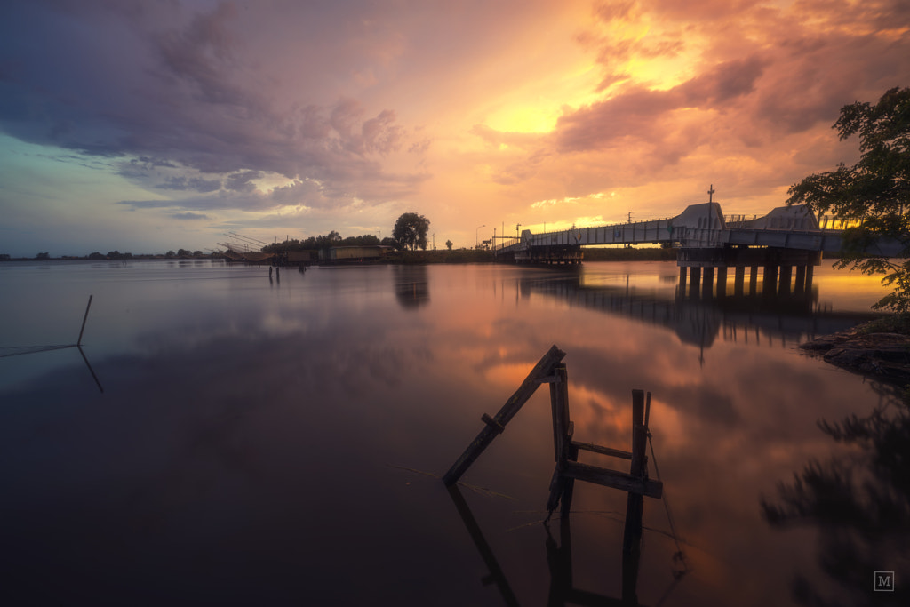 A spectacular sunset after a thunderstorm in the lagoon of Comacchio