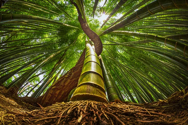 The pine tree which feels like the sky is climbing by bending bamboo