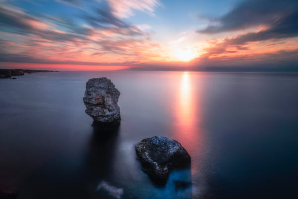 For some time now that we haven’t gone to our much-loved landscape photography sessions! And that day promised a good one! But that sunset was going to be magical, we were saying along the way! Quickly we would arrive at a beach that is so great in beauty, as it surprises us on every visit. Once again, we already knew it; we would have to be creative in that idyllic location! This time, the tide had brought the sand and made it seem empty even with the high tide. We started to compose in different perspectives than usual because that was how we felt that the memories of that day would be eternalized. And frustration came because the sun that had seemed so promising wanted to leave without pomp and circumstance that day … Everything collapsed around us; everything looked ugly and without joy. We felt abandoned and alone … But, always together, we decided to continue there. I was looking at that lonely rock in front of me, separated by the sea from others looking to be her family. At that moment, after the sun shyly said goodbye, tones that only exist in dreams started to appear before my eyes!! And it was at that exhilarating moment as I was admiring all that array of colours around me that I realized.