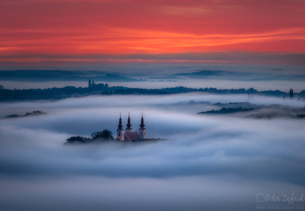 Dawn colours around Sveta Trojica v Slovenskih goricah shot from Zavrh tower, Slovenija