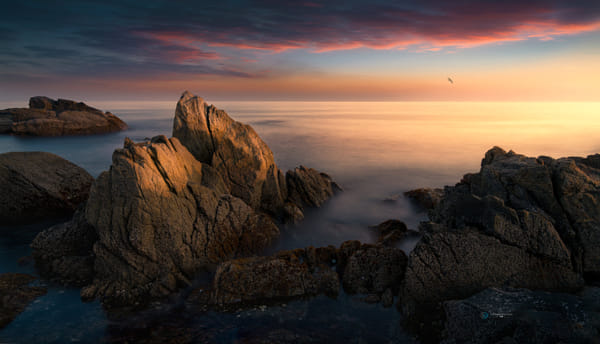 Vallina Beach, in Cudillero, is one of the places that for me represents the essence of the Cantabrian, a powerful coast full of rocky beaches with a thousand corners, caves, arches and rocks of unique shapes. In this image I wanted to highlight the presence of the rock dominating the scene, so I opted for a low shot and a centered framing, also looking for reflections in the small pools that broke the monotony in the foreground. The orientation of the place makes it ideal for sunsets and this time I was very lucky as it was truly spectacular. For the photography I used a Nisi 4 stops soft graduated ND filter to compensate the light difference in the sky. La Playa de Vallina, en Cudillero, es uno de los sitios que para mí representa la esencia del Cantábrico, una costa con carácter, playas rocosas, muchas veces meros pedreros, con mil rincones, cuevas, arcos y rocas de formas singulares. En esta imagen quería destacar el poderío de la roca dominando la escena, por lo que opté por un plano bajo y un encuadre centrado, buscando además los reflejos en las pequeñas pozas que rompiesen la monotonía en el primer plano. La orientación del lugar lo hace ideal para las puestas de sol y en esta ocasión tuve mucha fortuna ya que fue realmente espectacular. Para la realización de la fotografía utilicé un filtro Nisi ND degradado suave de 4 pasos para compensar la diferencia lumínica del cielo.