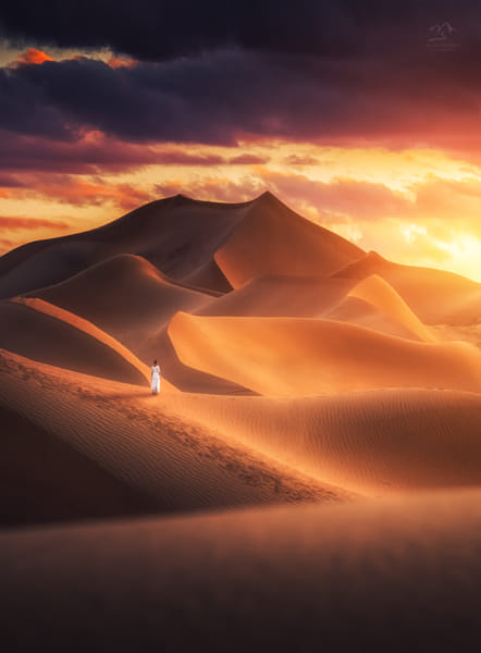 《Tengger Desert》腾格里沙漠里的傍晚,晚风微凉,远处沙丘还映着红光,天边的彩霞很低很低,仿佛触手可及。远处羊群的咩声、鸟叫、远处牧民粗犷的谈笑声又那么朴实亲切。这一刻突然发现我在这天地间已经走了好远,各种情绪袭来,想微笑又想落泪。眼前的一切就像是那个我寻找已久的梦。PS:出镜模特:@菁菁要去南极。拍摄当晚,我们一行十九人就扎营在这片沙漠里。致每一位和我在路上的伙伴们,在路上因有你们而更精彩。行走在路上的阿卡.AK