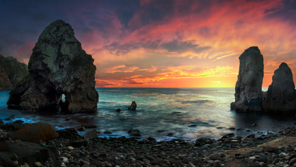 sunset rocky beach in portugal