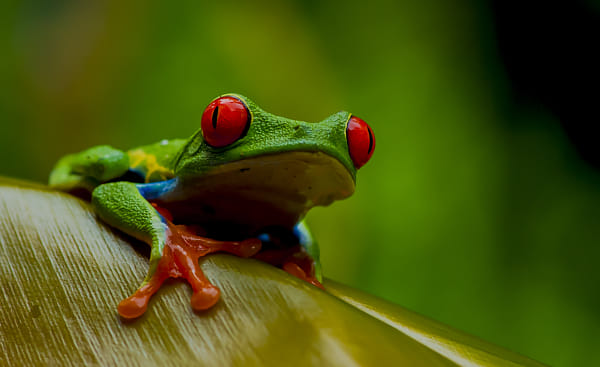 This beautiful, non-poisonous red eyed green tree frog I captured from Costa Rica. This is very small sized frog, just as big as my thumb.
