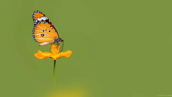 An endeavor to find the simplest definition of natural beauty. A frozen frame from the everyday life of a common tiger butterfly at the meadow.