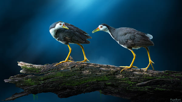 Moonstruck ! Moonstruck are these two White breasted Water hens at the lake side. And the theme for the background dream is just a digital fantasy