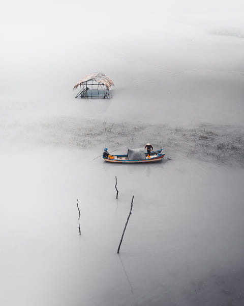 A morning in the backwaters of XIapu. two fishermans leaves their village.