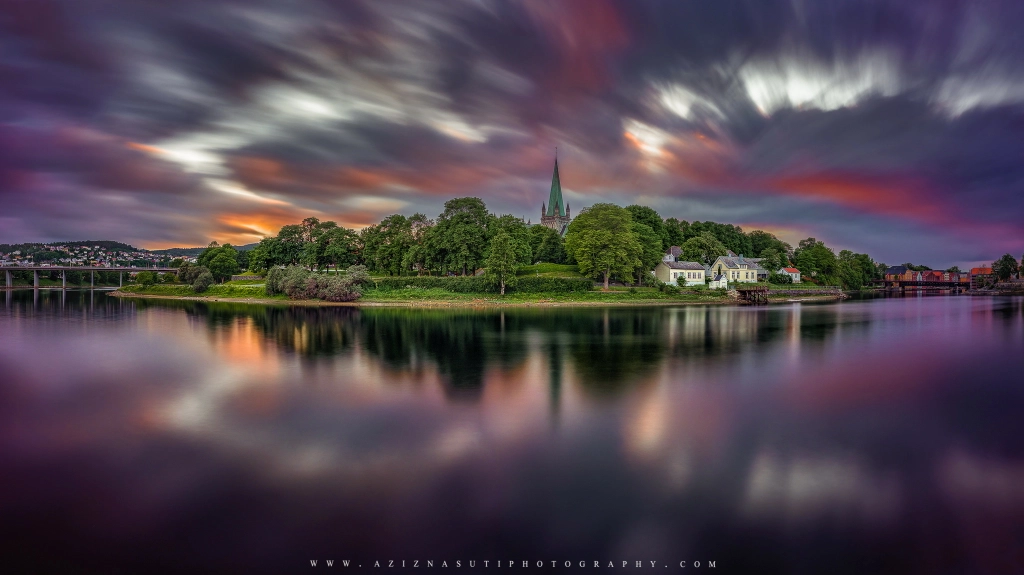 Lovely Summer Sunset Over Nidarosdomen, Bryggene and Nidelva Riv by Aziz Nasuti