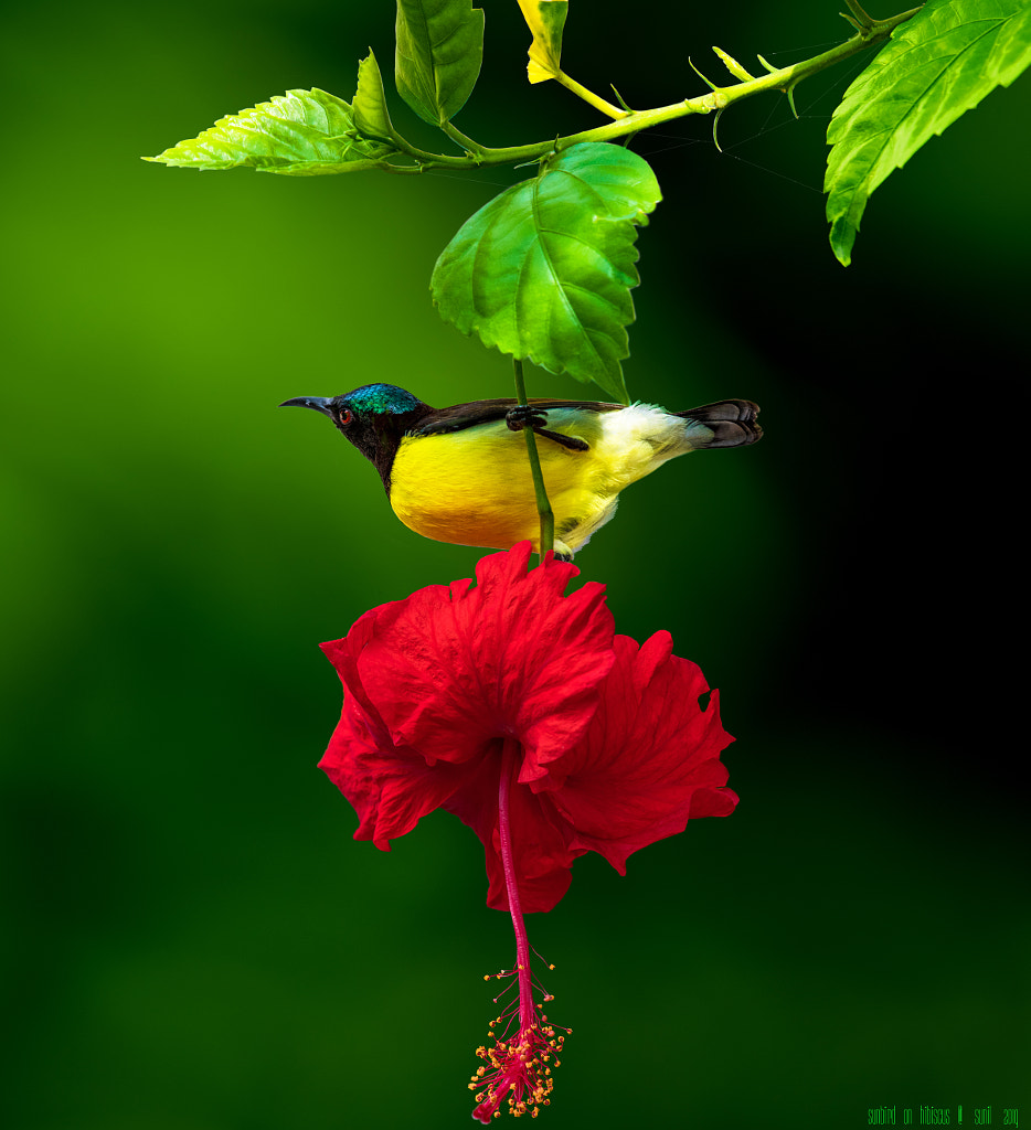 Sunbird On Hibiscus by Sunil