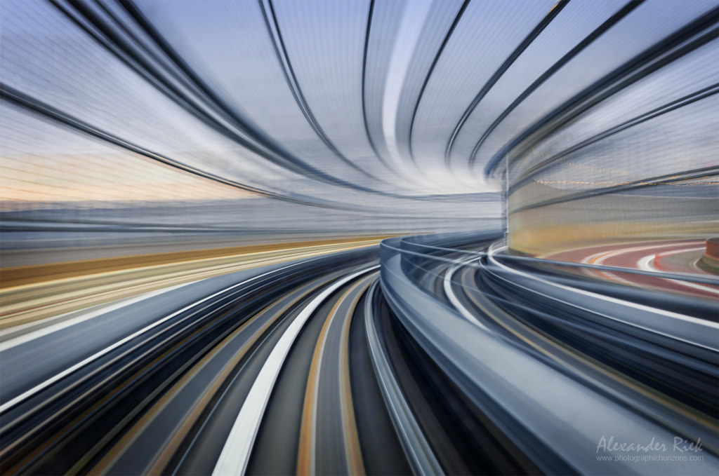 Taken from the rear window of the Odaiba train line in Tokyo.