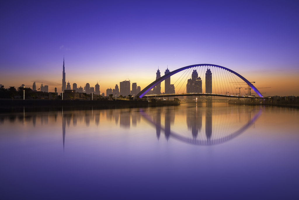 This is a blue moment from Dubai water canal with this beautiful footbridge on the foreground and Dubai’s towers on the second plan.