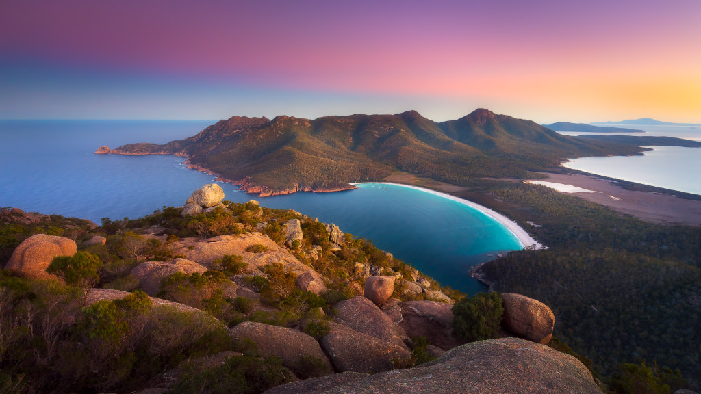 The magnificent view of Wineglass Bay and Freycinet National Park from Mount Amos. One day I’d like to do the reverse view from the distant peaks of Mount Graham and Mount Freycinet looking back.