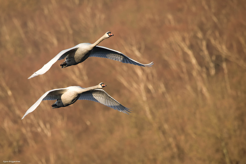 Höckerschwan/Mute Swan Synchron Flight by Sigrun Brüggenthies