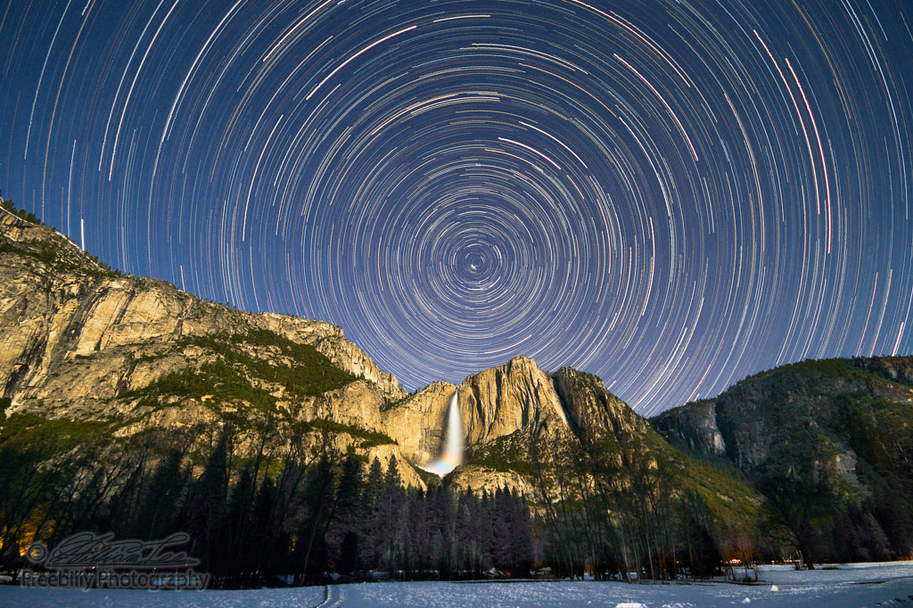 Yosemite Falls with moonbow and star trails by William Freebilly photography