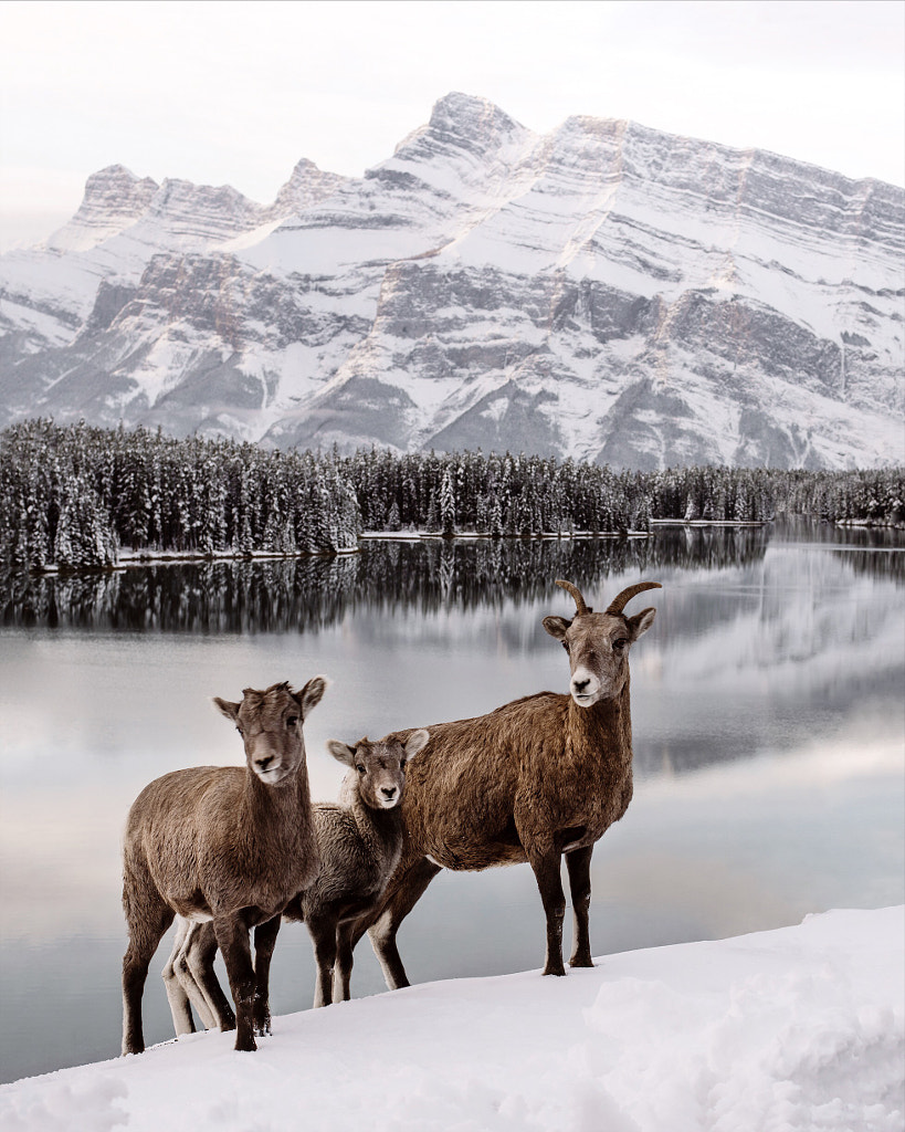 Sunrise. Rocky Mountain Sheep. Two Jack lake. Banff. Alberta. I experienced autumn for 4 days in Canada but winter had its own agenda. This was a beautiful morning after 2 solid days of snow.
