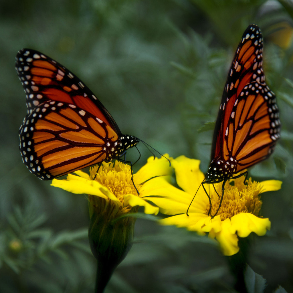 Two butterflies Monarch by Andre Villeneuve