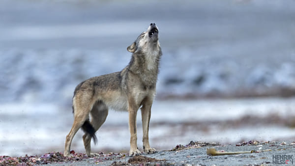 A coastal alpha wolf asserts his dominance over me and the remote beach we were sharing.