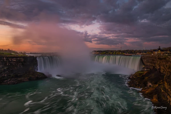Got up at 3:30am, headed to Niagara Falls for sunrise… I normally started from near Horseshoe Falls location to far away to it. It was opposite this time. So, I got the wide-angled photo first. I did not use LEE 10 stop filter but made the camera settings to get the longer exposure time. The waterfalls were strong, you can see the silky LE effects even in 1~2 seconds exposure. This one was 4 seconds exposure time. Left side: US; You can see the road and their observation location; you can also see the little birds on the bottom (white dots). Right side: Canada; Top is “Table Rock Welcome Centre”; Bottom is the observation platform. The time frame for best sunrise light was short, I run from one location to another one in the long walking path ;))