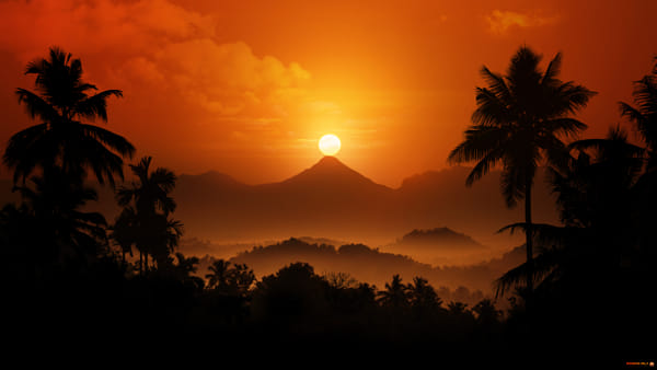From a vantage point near home, I get to see this beautiful view of the Western Ghats. A range of mountains along the western edge of peninsular India. One peak in particular, is that of this prehistoric and extinct volcano. On 14th April every year, the Sun passes exactly over the summit during its northern transit. It appears like a ball of lava emerging from the vent. Tropicana is my creative interpretation of this beautiful natural event.