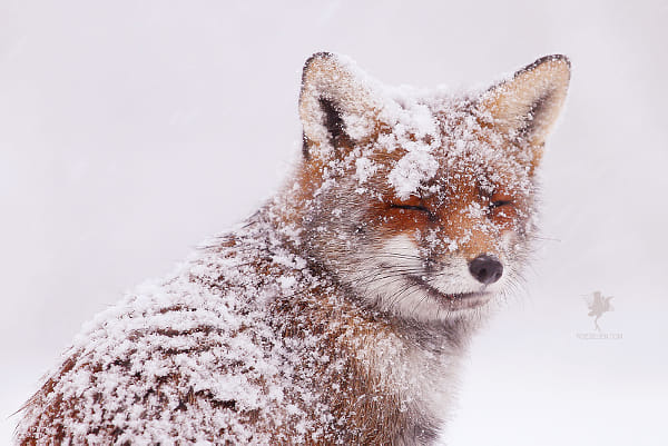 Red Fox in a Snow Shower by Roeselien Raimond